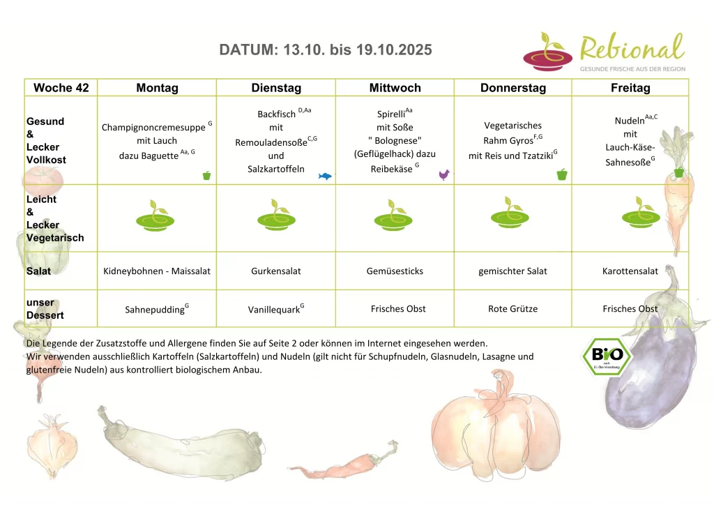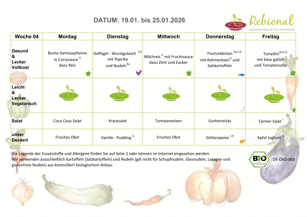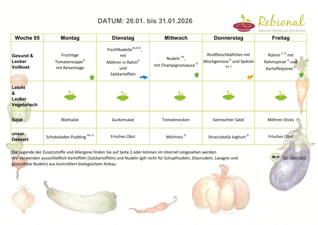 In unseren Kindergärten Kleiner Bär und Kleiner Tiger kochen wir komplett alle Mahlzeiten selbst. Im Kindergarten Kleiner Fuchs bekommen wir einige Essen von einem Zulieferer und kochen zusätzlich dazu selbst. Im pädagogischen Mittagstisch bekommen wir unser Essen von Rebional geliefert.